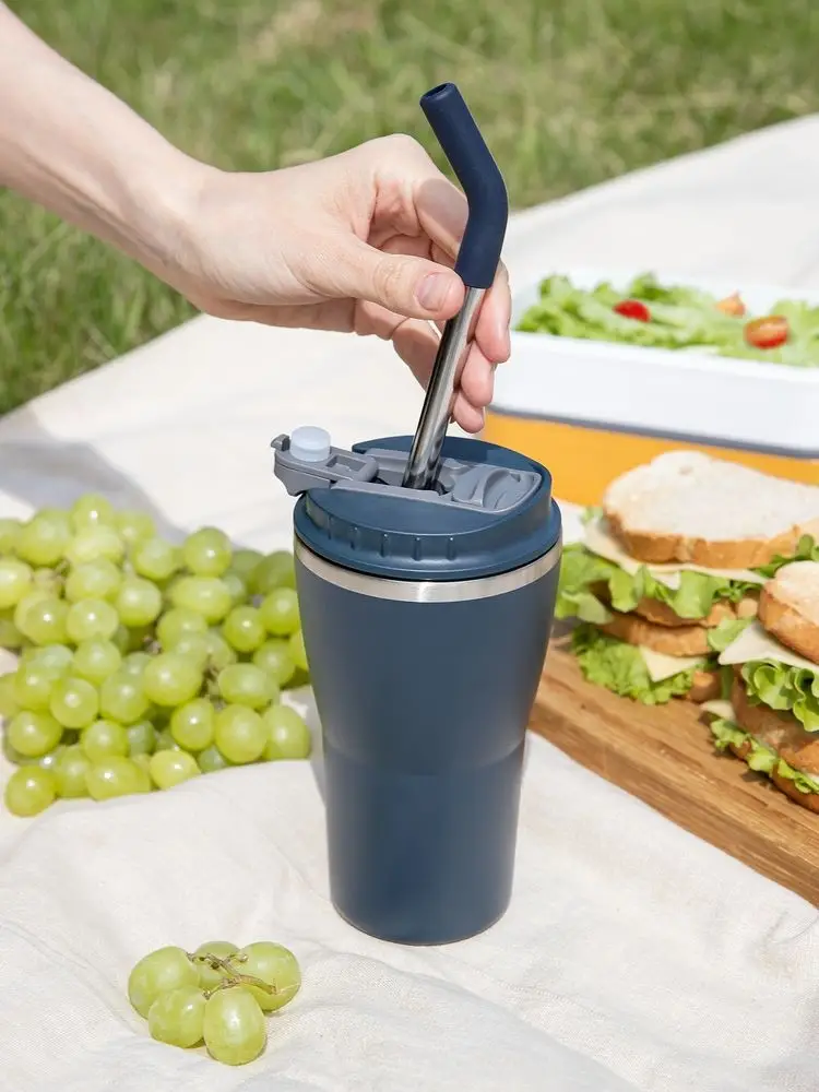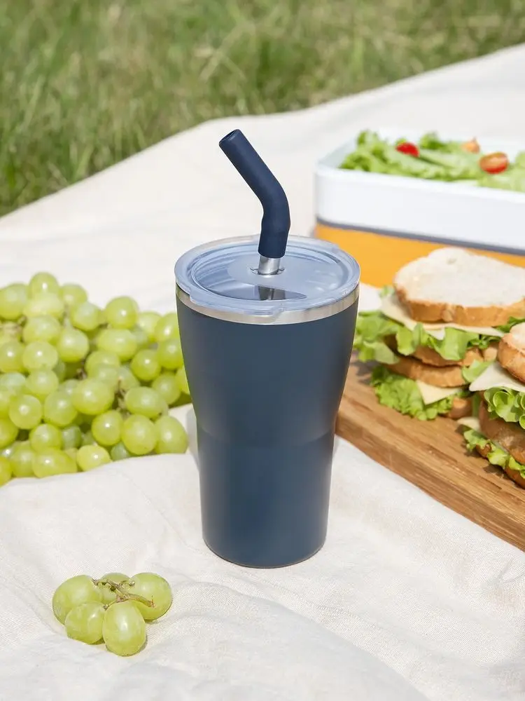 - 2 крышки в комплекте: одна на 100% герметичная с механизмом блокировки отверстия для питья, вторая — с отверстием для трубочки