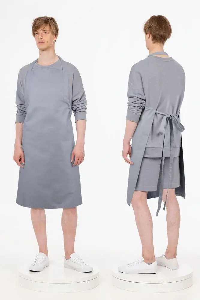 Базовый фартук разработан в рамках единой коллекции одежды и аксессуаров и легко комбинируется с ее элементами. Специально спроектированные лекала и технологии пошива открывают простор для любых вариантов кастомизации и нанесения изображений. На видимой части изделий нет лейблов с айдентикой бренда, а название бренда с уходника легко удалить.