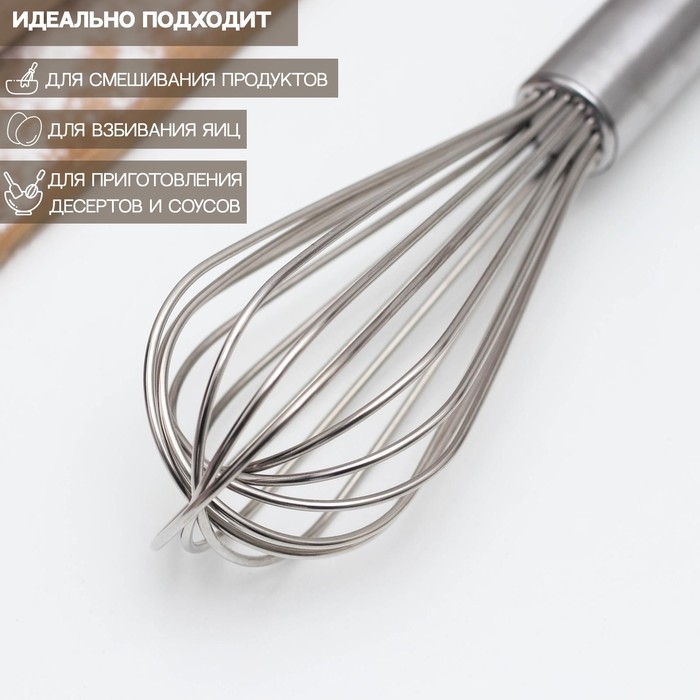 Венчик для взбивания с толстыми струнами KONFINETTA, 37×7 см, цвет серебристый