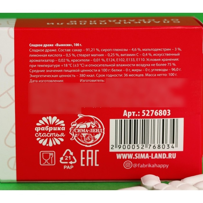 Драже Конфеты-таблетки «Выносин» с витамином С, 100 г.