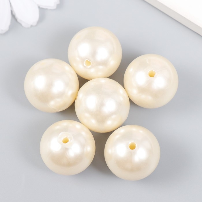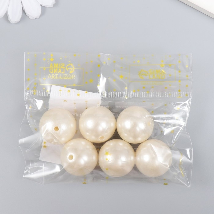 Бусины для творчества пластик "Жемчуг белый" d=2,2 см набор 6 шт