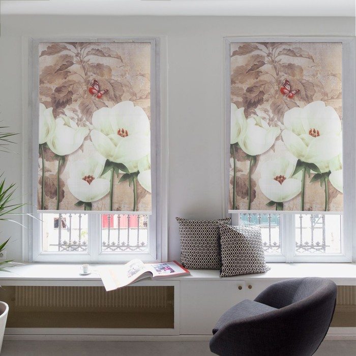 Штора рулонная «Тюльпаны белые», 90×200 см (с учётом креплений 3,5 см)