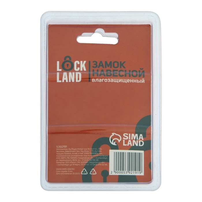 Замок навесной LOCKLAND, 30 мм, влагозащищенный, короткая дужка, 2 ключа, цвет черный