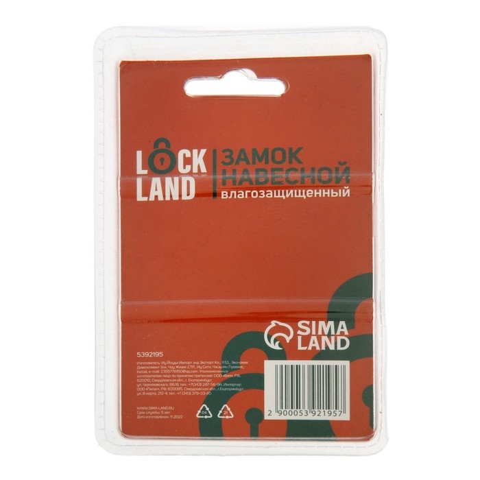 Замок навесной LOCKLAND, 30 мм, влагозащищенный, длинная дужка, 2 ключа, цвет черный