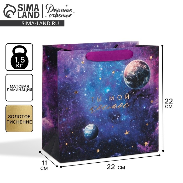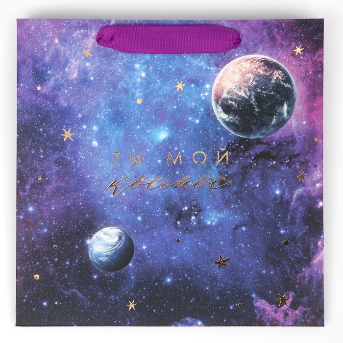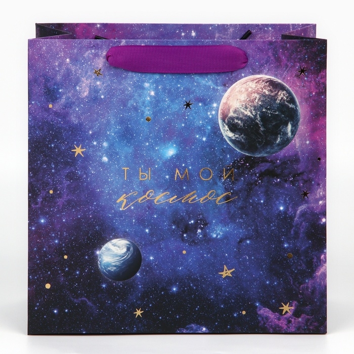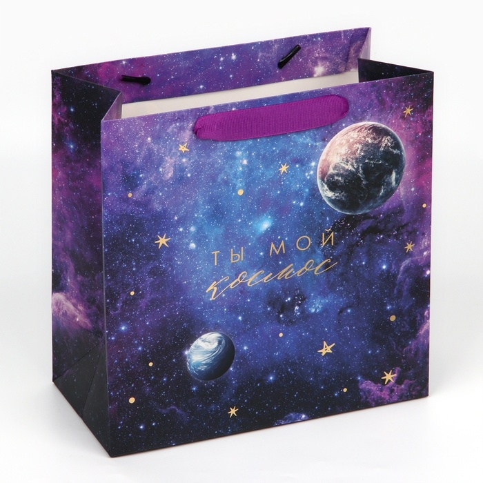 Пакет подарочный ламинированный квадратный, упаковка, «Ты мой космос», 22 х 22 х 11 см