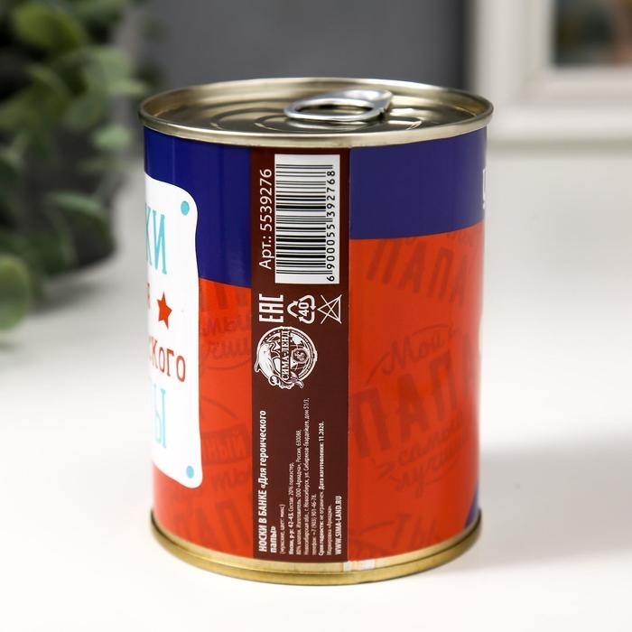Носки в банке "Для героического папы" (внутри носки мужские, цвет чёрный)