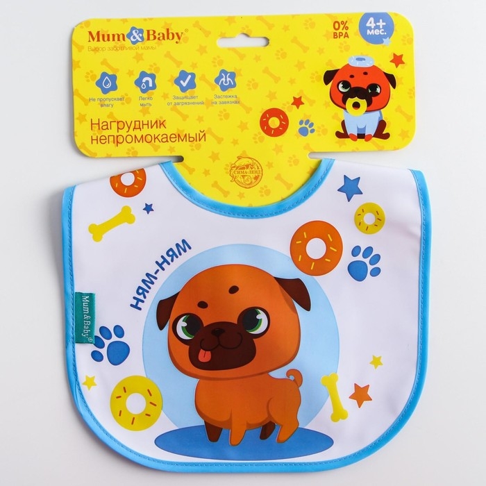 Нагрудник для кормления «ТРЕНД. Мопс» непромокаемый на завязках