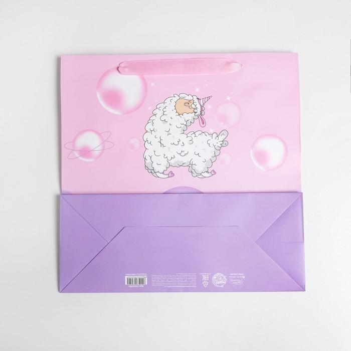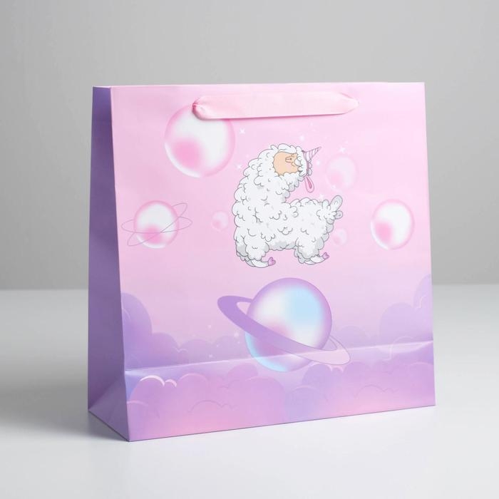 Пакет подарочный ламинированный квадратный, упаковка, «Cosmo Llama», 30 х 30 х 12 см