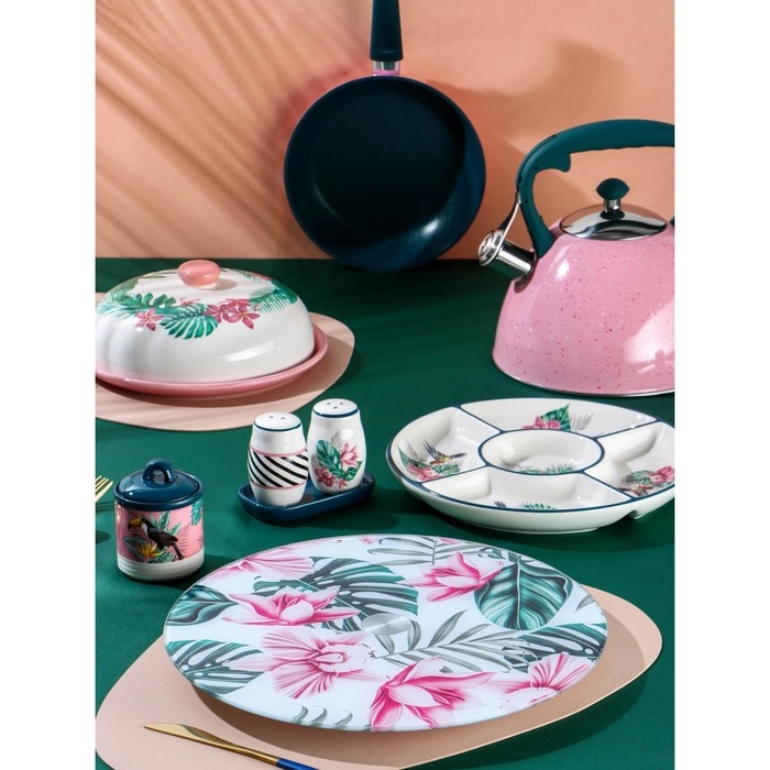 Посуда серии «Тропики» от торговой марки Доляна изготовлена из качественного доломита. Оригинальный и яркий дизайн изделий добавит изюминку на вашу кухню. Посуда в таком исполнении станет настоящим украшением для интерьера и декором для праздничной сервировки стола!