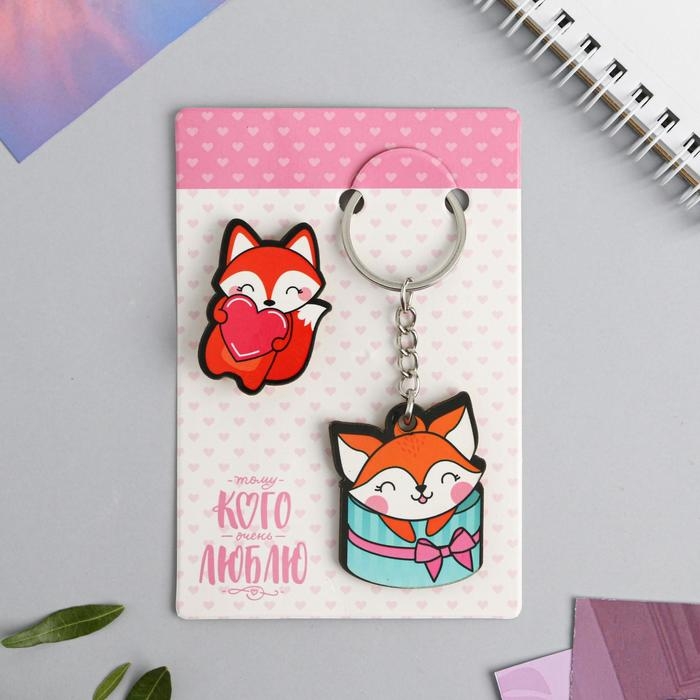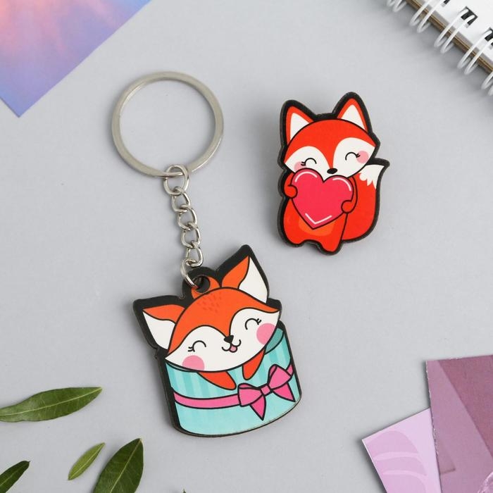 Брелок для ключей, значок, сувенир «Лисенок», набор, 6,8 х 10,5 см.