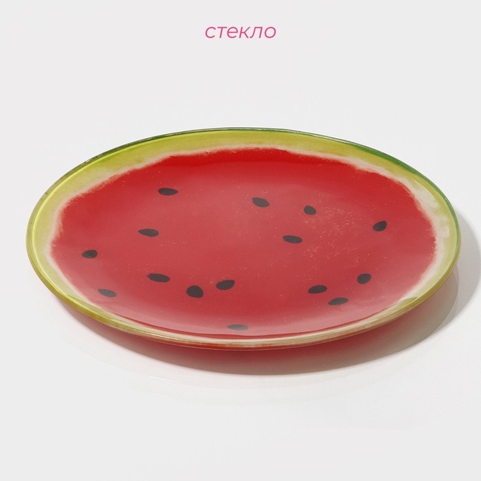 Тарелка стеклянная Доляна «Сладкий арбуз», d=20 см, цвет красный