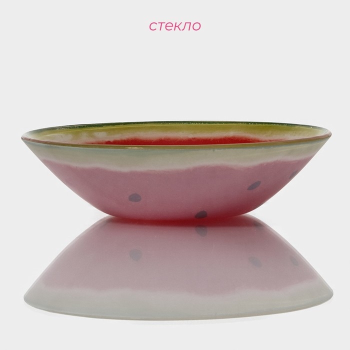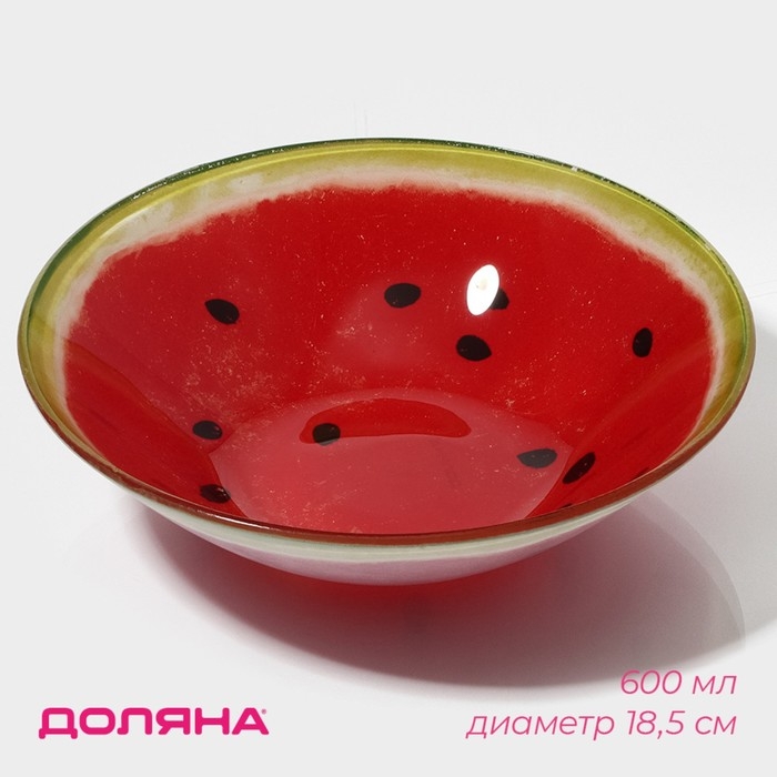 Салатник стеклянный Доляна «Сладкий арбуз», 600 мл, 18,5×5 см, цвет красный