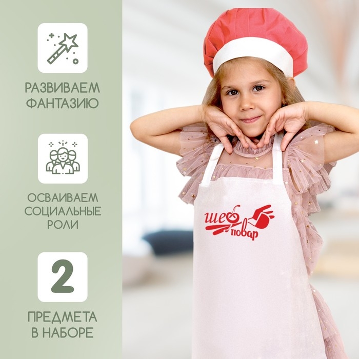 - Фартук и поварской колпак подойдут для детей от 3 до 7 лет.