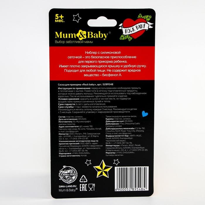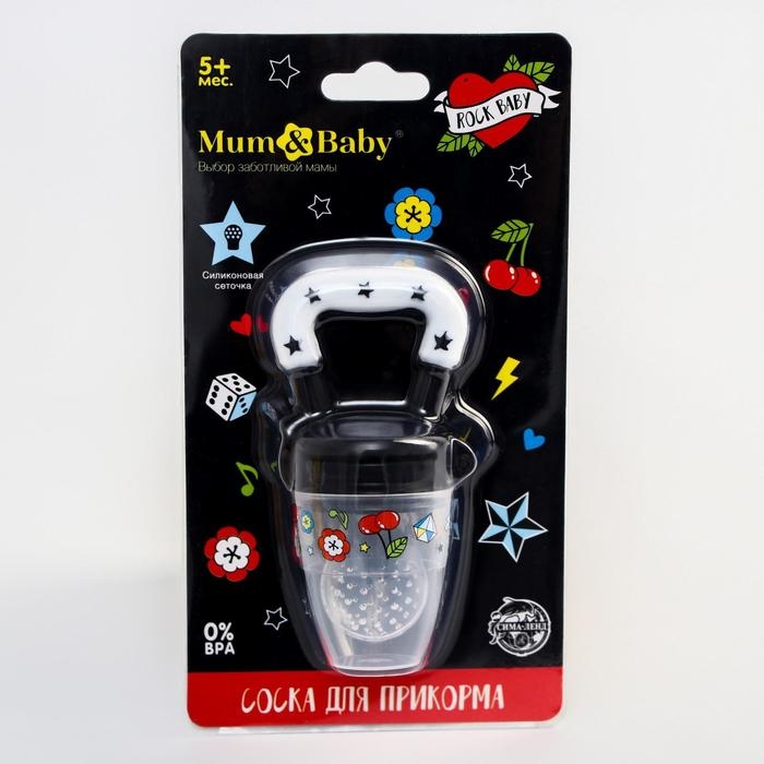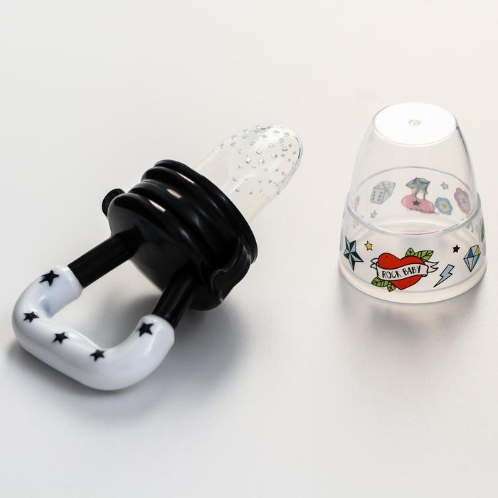 Ниблер для прикорма, с силиконовой сеточкой Rock baby, цвет черный+белый