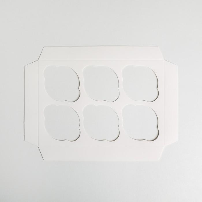 Коробка на 6 капкейков с окном, белая, 25 х 17 х 10 см