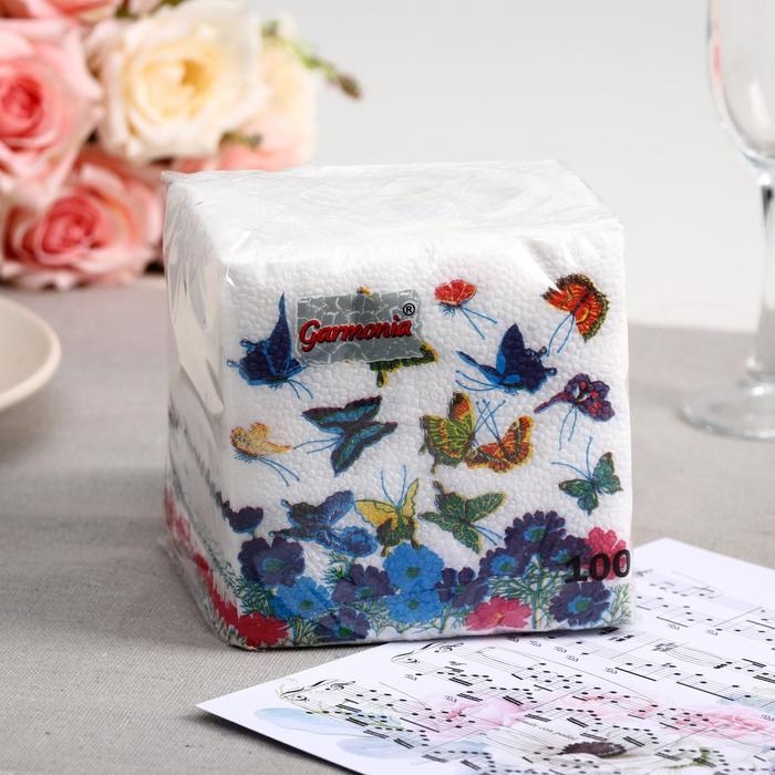 Салфетки бумажные Гармония цвета Бабочка, 100 листов