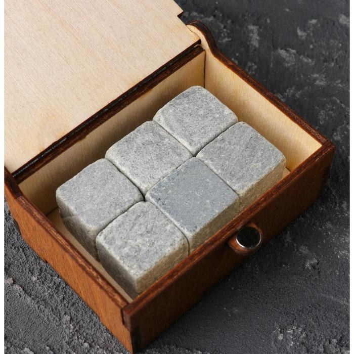 Камни для виски "Крепкий", в шкатулке с магнитом, натуральный стеатит, 6 шт