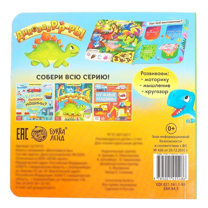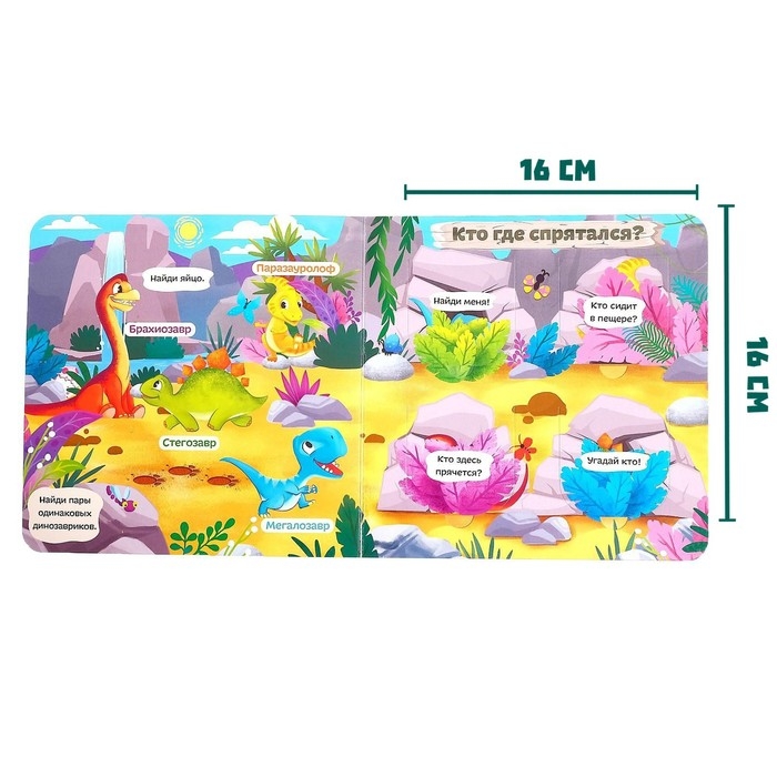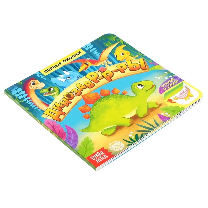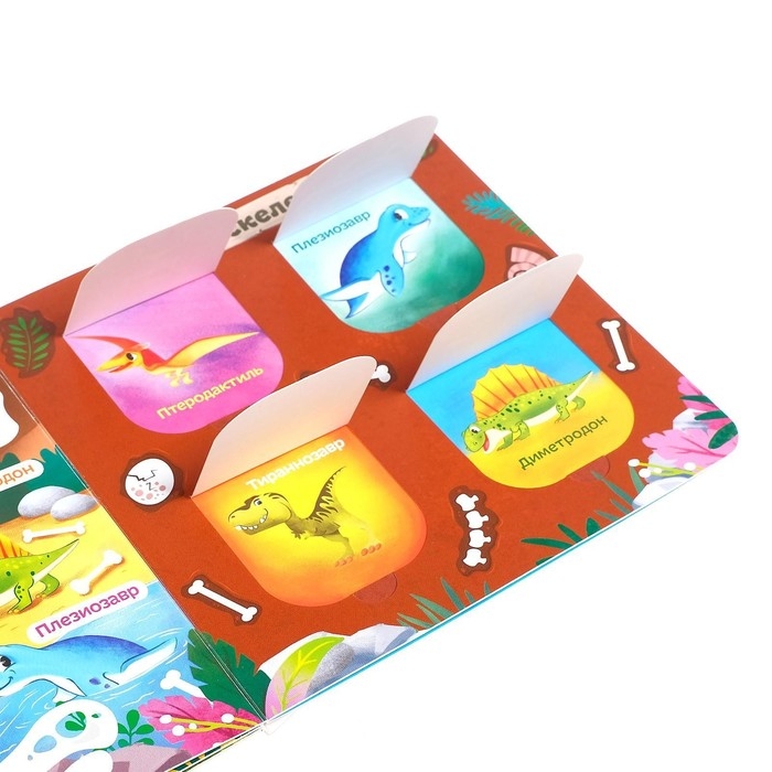 На страницах книги малыш встретит древних животных, которые обитали на Земле миллионы лет назад, а ещё — много интересных вопросов о них. Чтобы узнать ответы, достаточно посмотреть, кто спрятался в окошках.