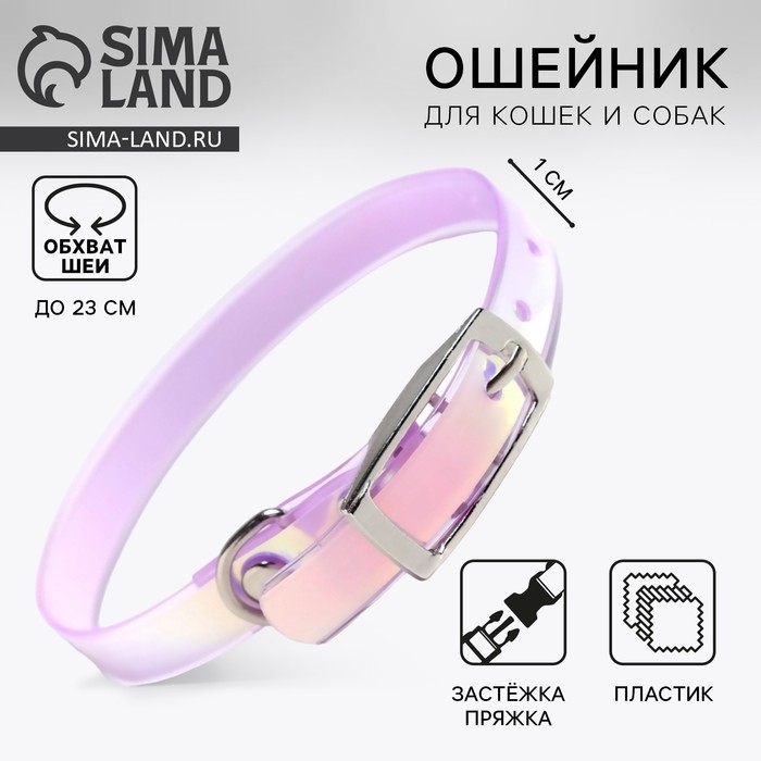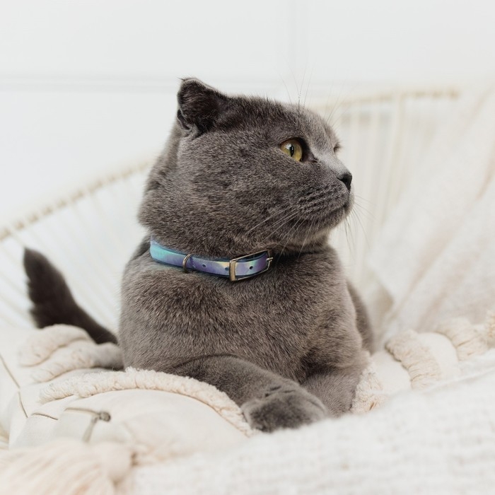 Голографический ошейник для кошек и собак красиво переливается на свету. Блики на аксессуаре помогут уследить за питомцем и обеспечат ему безопасность в тёмное время суток. Ошейник лёгкий и не натирает шею животного.
