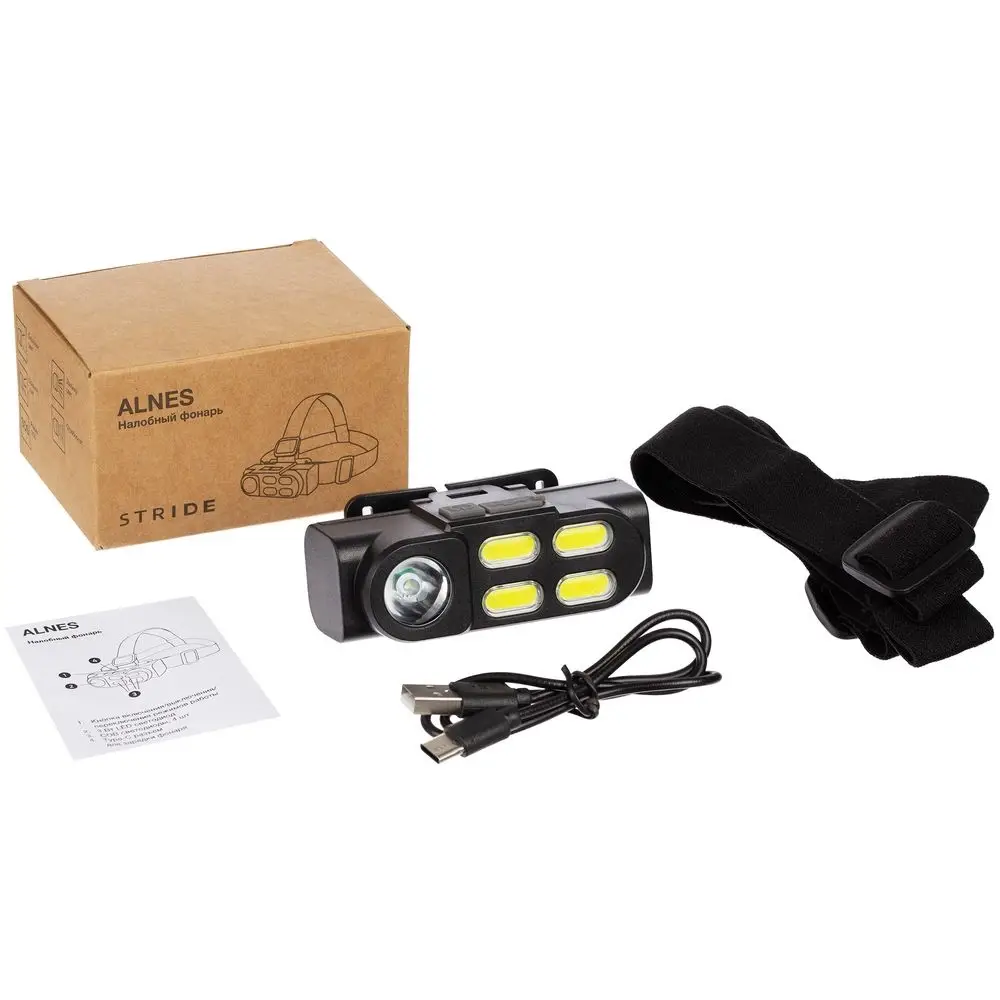 Налобный фонарик аккумуляторный Alnes, черный