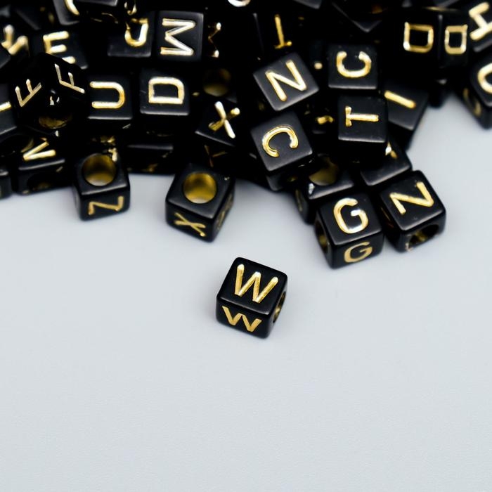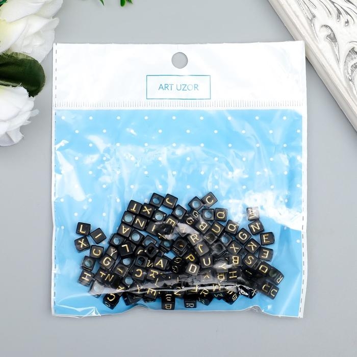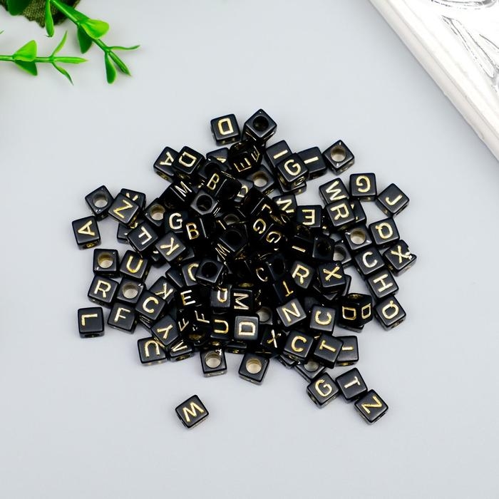 Бусины для творчества пластик "Английские буквы на кубике" чёрно-золот набор 20 гр 0,6х0,6 см 5194