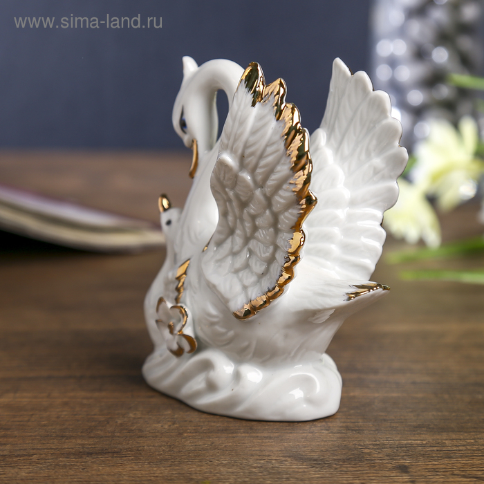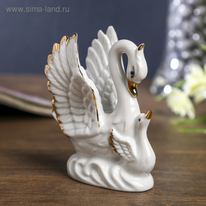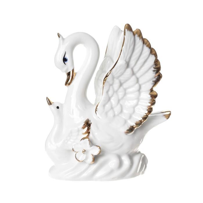 Сувенир керамика "Белая лебедь с малышом" 10,5х9х4,5 см