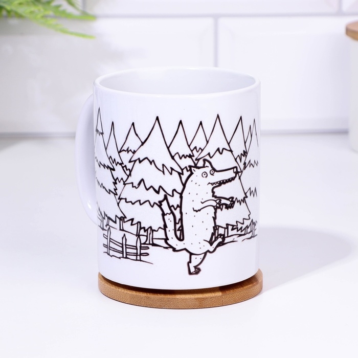 Кружка изготовлена из керамики. Рисунок нанесён методом сублимации, при котором краска проникает в верхний слой изделия, поэтому изображение получается стойким.