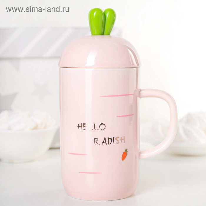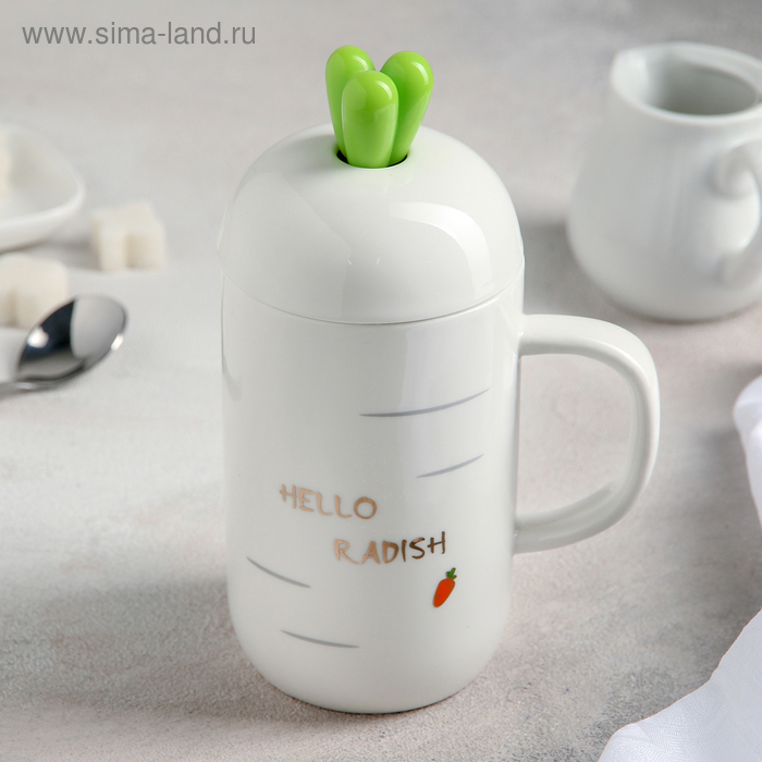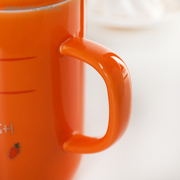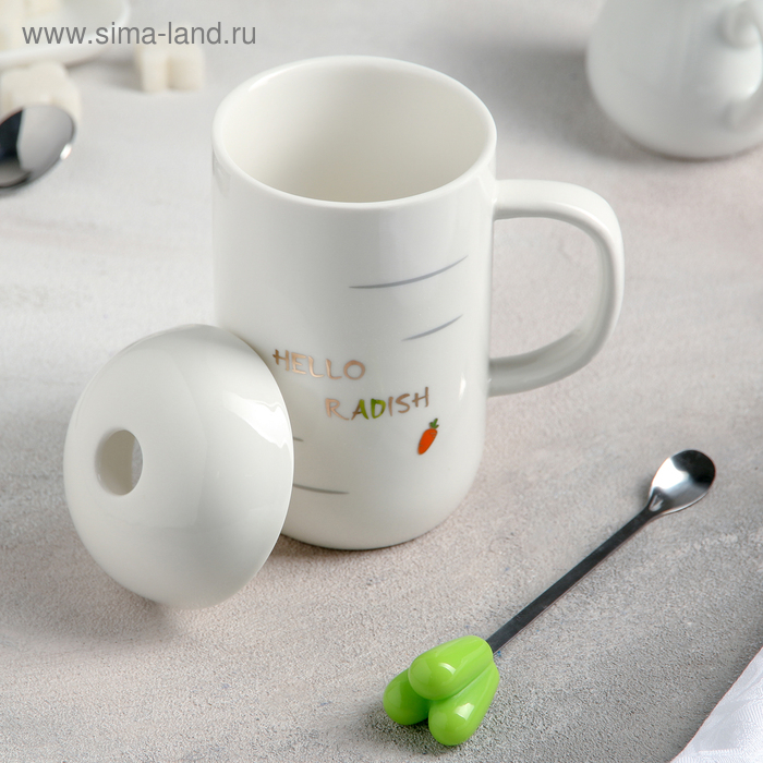 Кружка керамическая с крышкой и ложкой «Морковка», 380 мл, цвет белый
