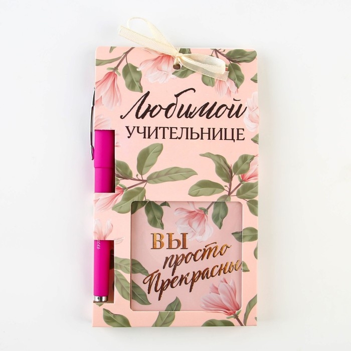 Подарочный набор «Учителю: Любимой учительнице»: блок бумаги и ручка пластик