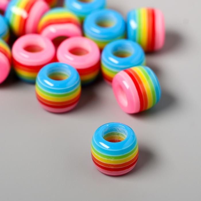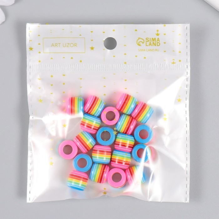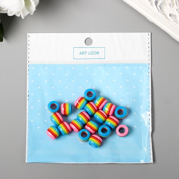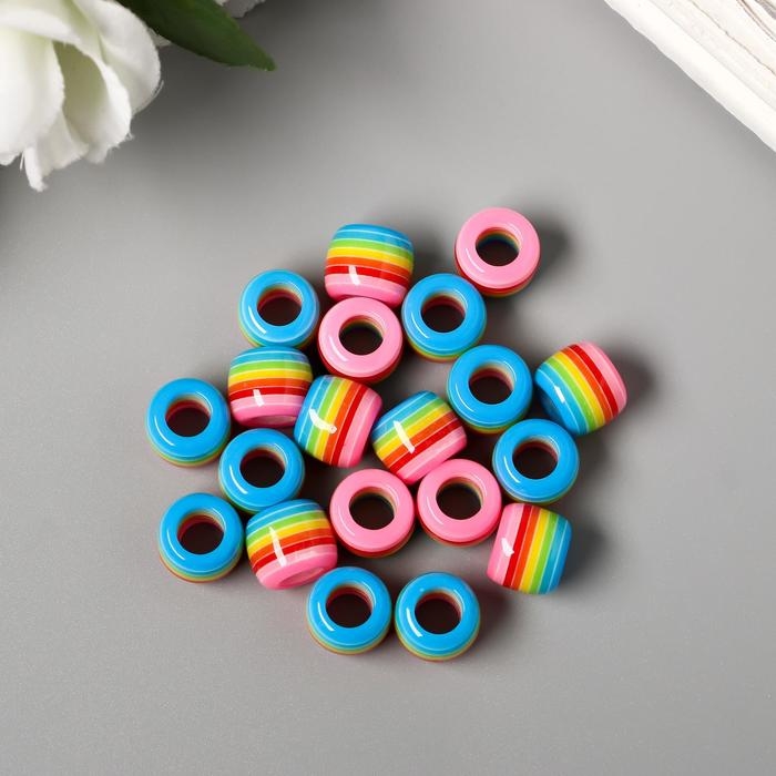 Бусины для творчества пластик "Полосатый цилиндр с розовым" набор 20 шт 1х1,2х1,2 см