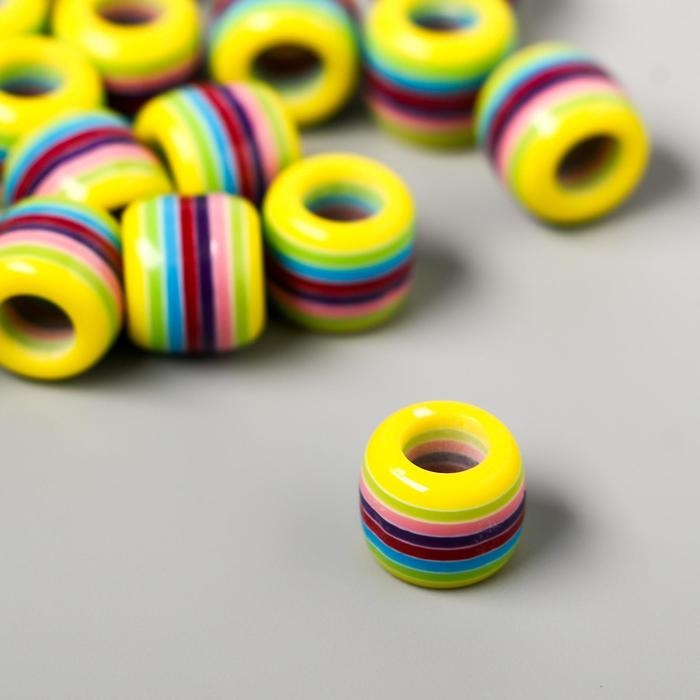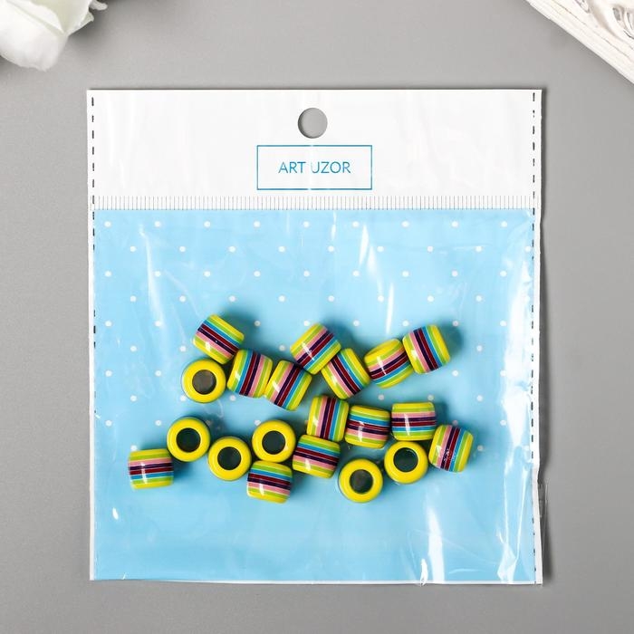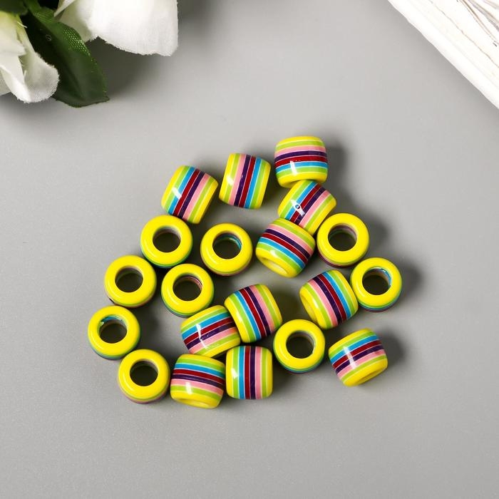 Бусины для творчества пластик "Полосатый цилиндр с жёлтым" набор 20 шт 1х1,2х1,2 см