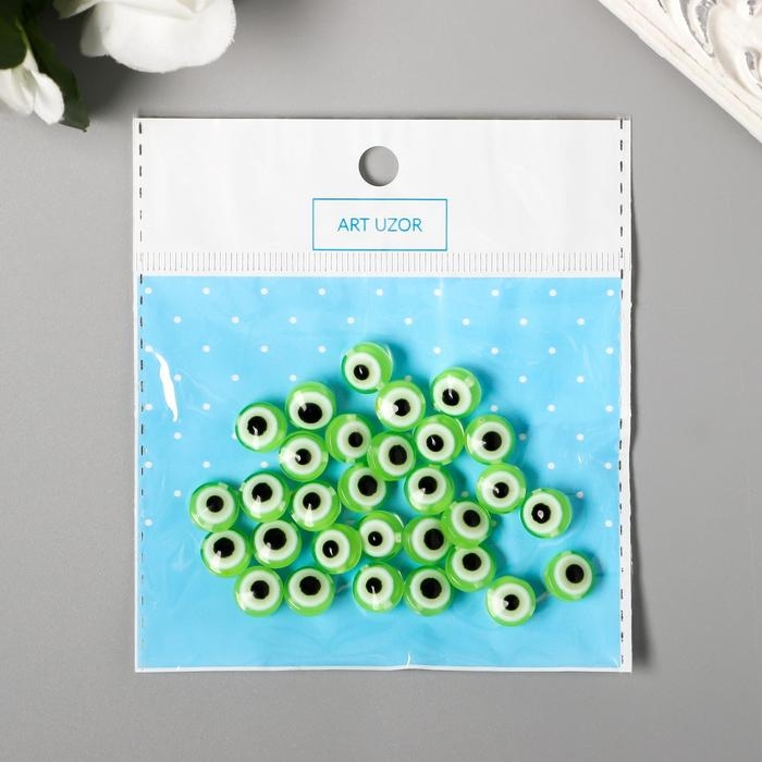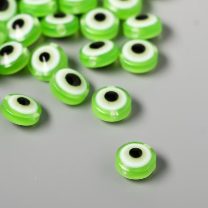 Бусины для творчества пластик "Глаз от сглаза - зелёный" набор 30 шт 0,7х1х1 см