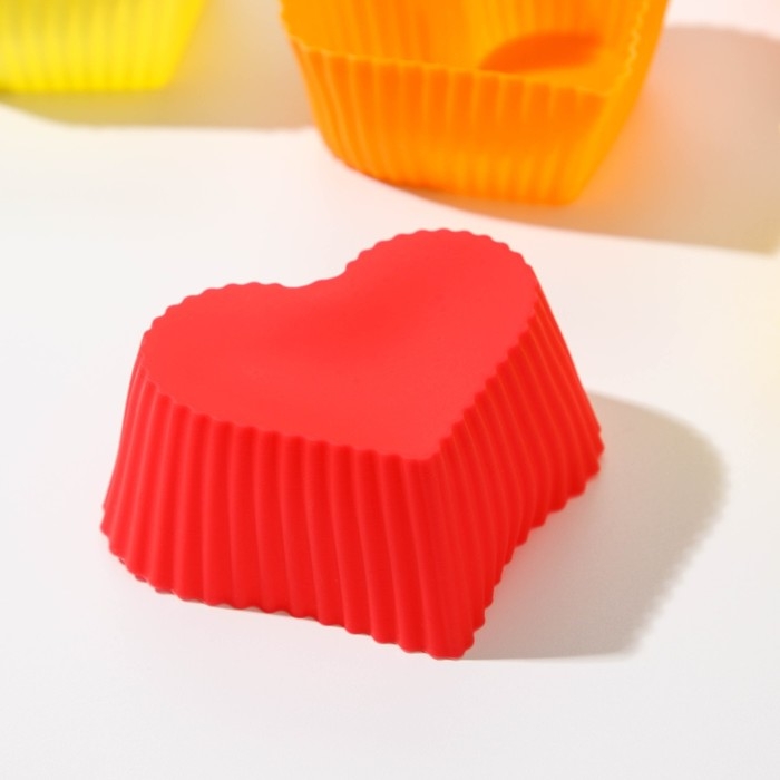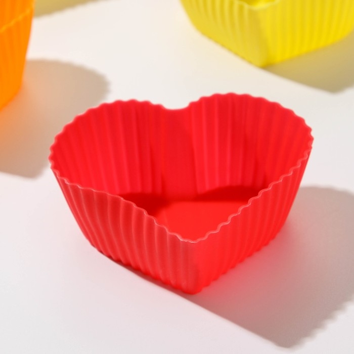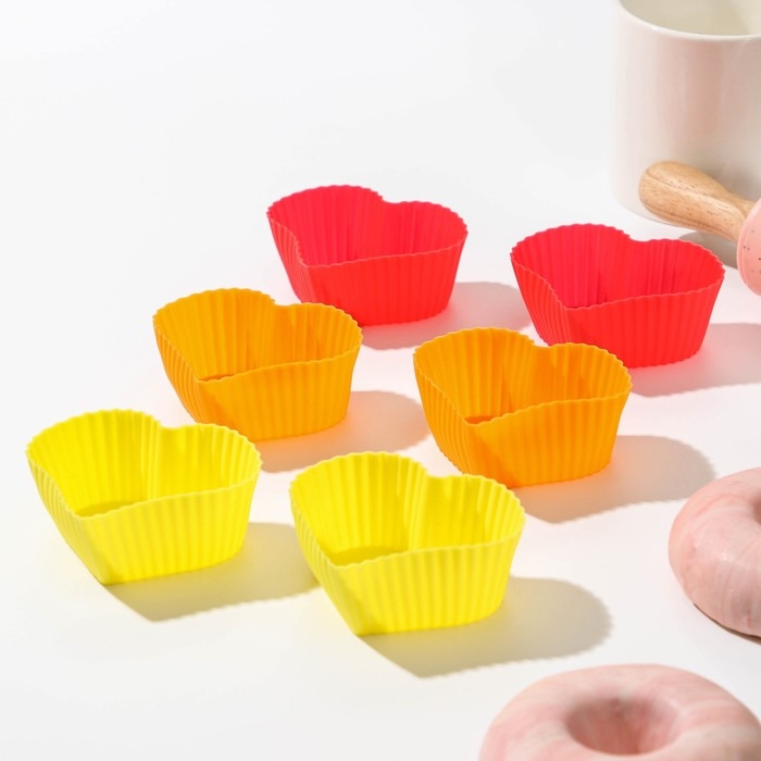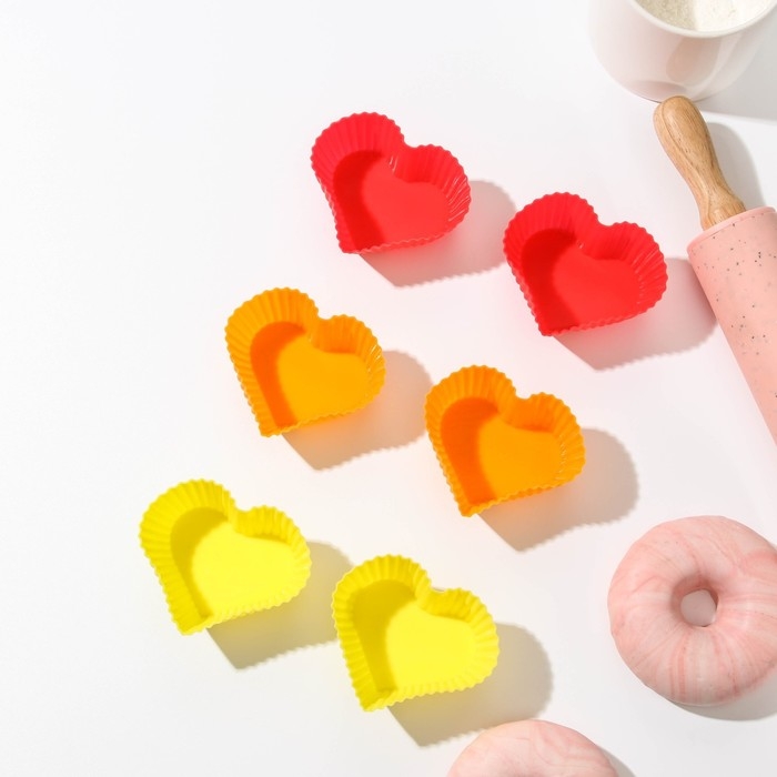 Набор форм для выпечки Доляна «Риб.Сердце», силикон, 7×3×6 см, 6 шт, цвет МИКС