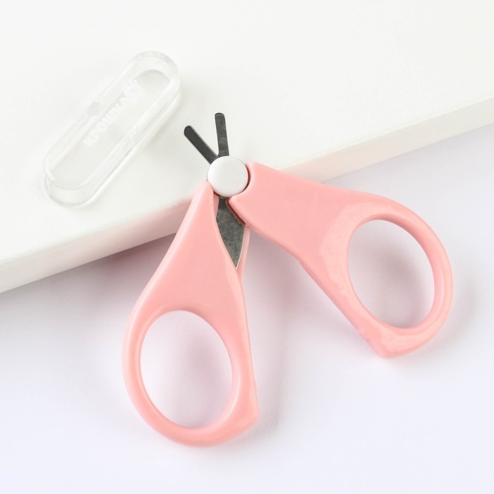 Ножницы детские безопасные, маникюрные, с чехлом, от 0 мес., цвет розовый