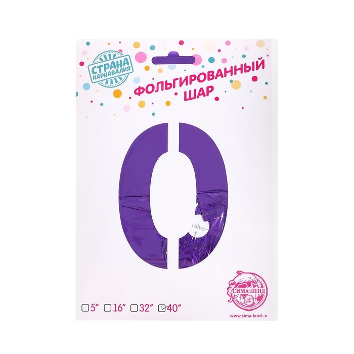 Шар фольгированный 40" «Цифра 0», цвет сиреневый, 1 шт.