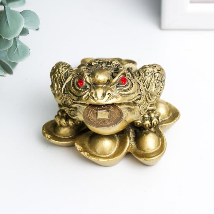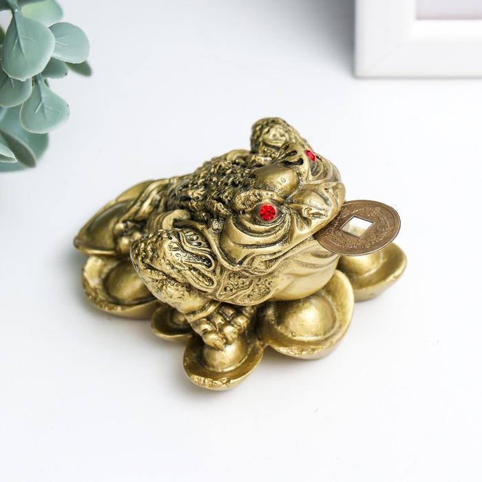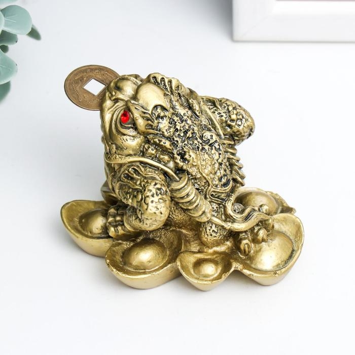 Нэцке полистоун под бронзу "Денежная жаба на слитках золота" 4,7х6,5х6,3 см