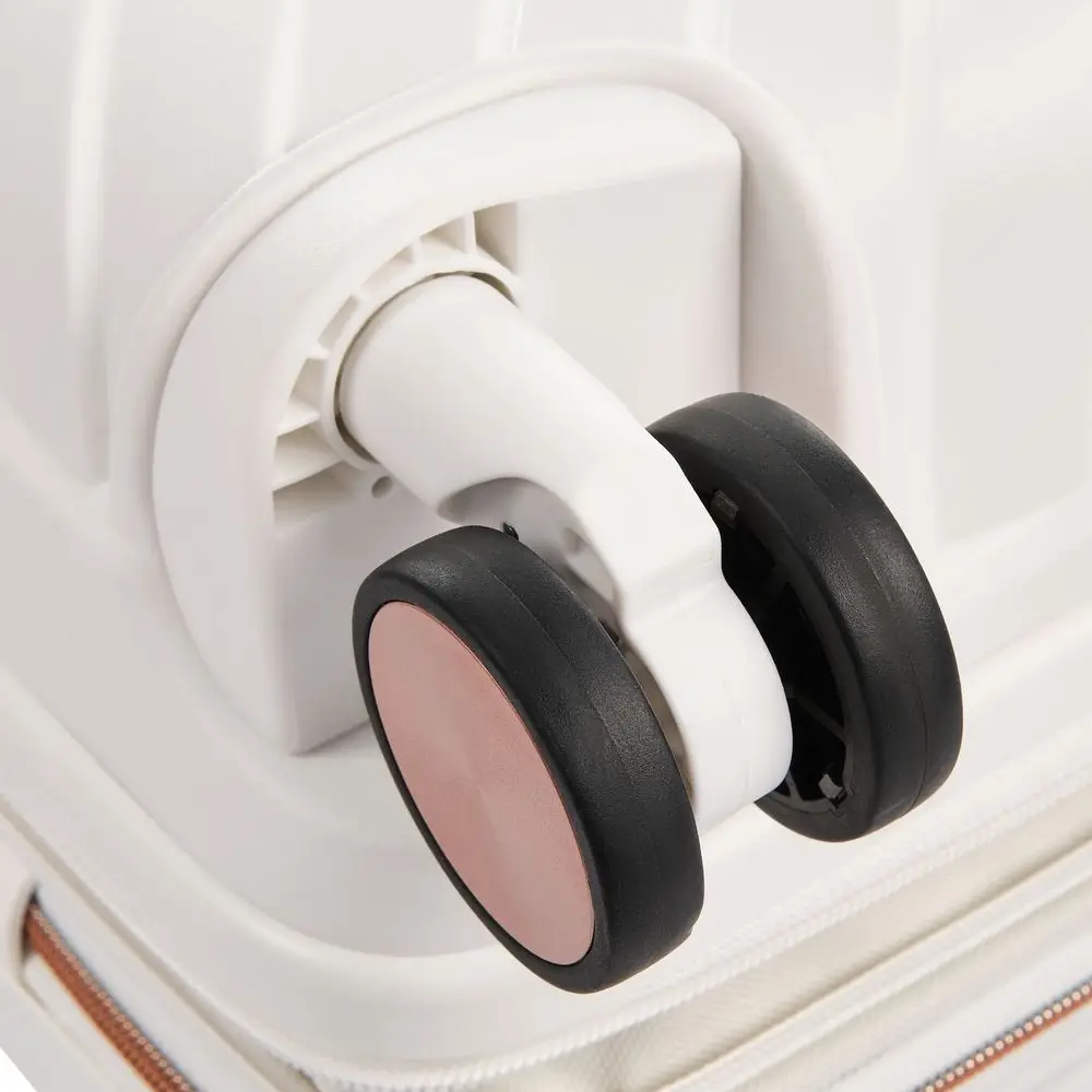 - Блок крепления колеса встроен в корпус чемодана, что обеспечивает лучшую устойчивость к внешнему воздействию