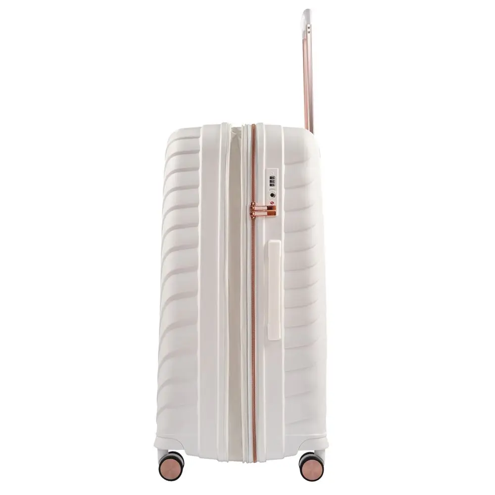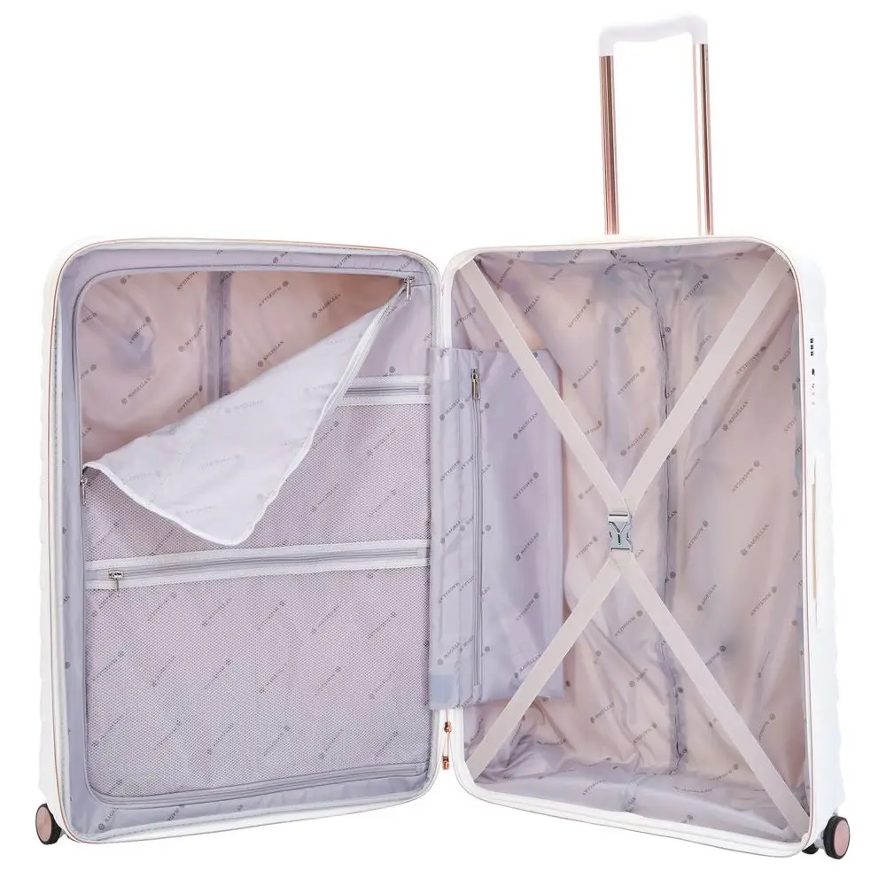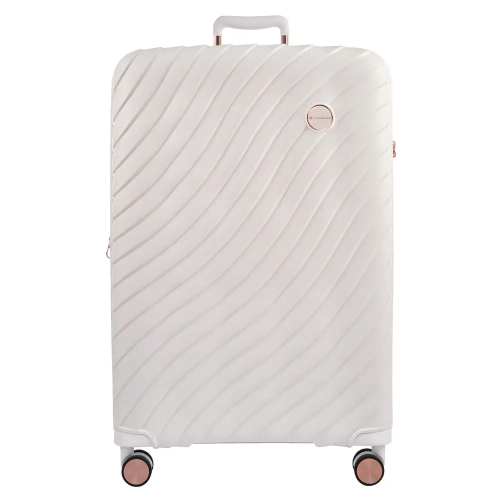 Чемодан из женственной коллекции Victoria имеет стильную обтекаемую форму и узор с плавными волнами, которые выделяют его среди других. Нежные оттенки придают чемодану элегантный вид, подчеркивая индивидуальность и хороший вкус путешественницы.