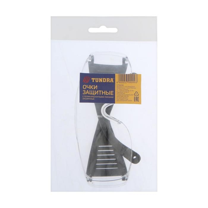 Очки защитные ТУНДРА, с поликарбонатными линзами, прозрачные, черные дужки