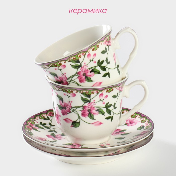 Набор чайный керамический Доляна «Колокольчики», 4 предмета: чашка 250 мл, блюдца d=15 см