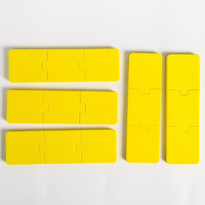 Изделия выполнены в виде пазлов, которые нужно соединять друг с другом, чтобы собрать единую картинку.