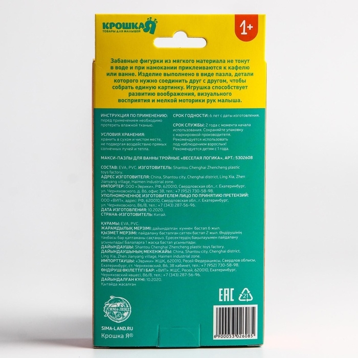 Мягкий пазл для малышей «Веселая логика», 5 пазлов, виды МИКС, Крошка Я