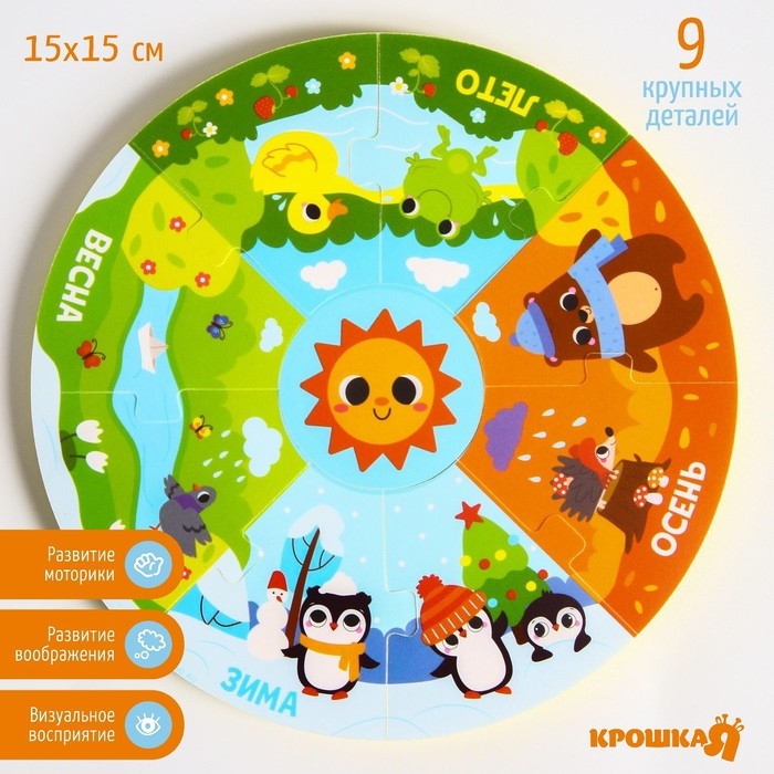 Мягкий пазл для малышей «Пирамидка: Изучаем времена года», 9 деталей, Крошка Я