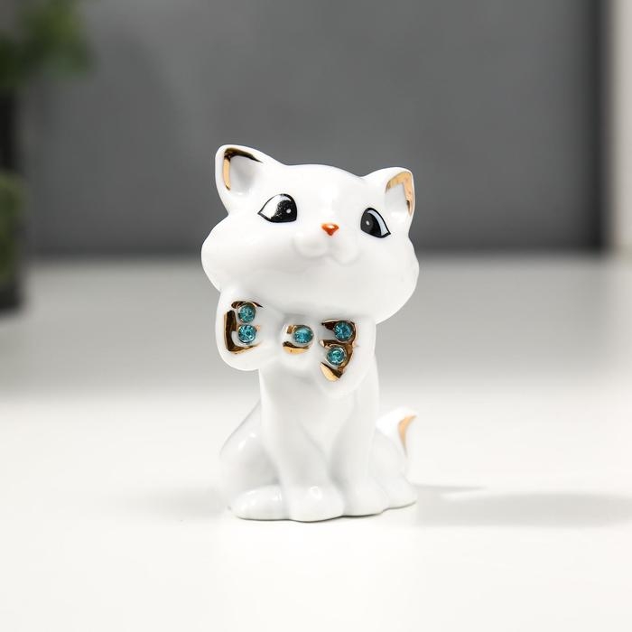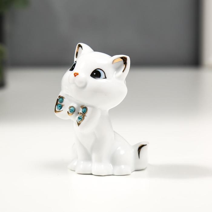 Сувенир керамика "Белый котёночек с бабочкой" с золотом, стразы 7,5 см