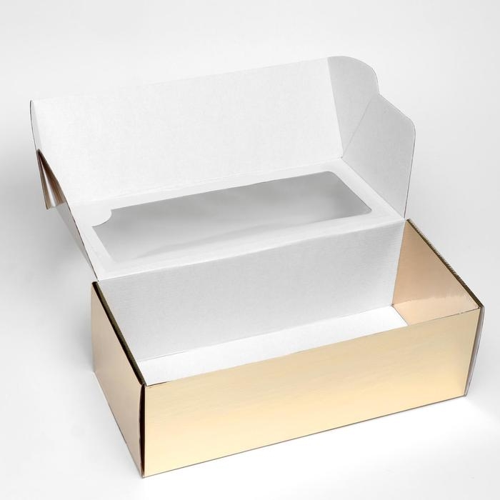 Коробка самосборная, с окном, золотая, 16 х 35 х 12 см