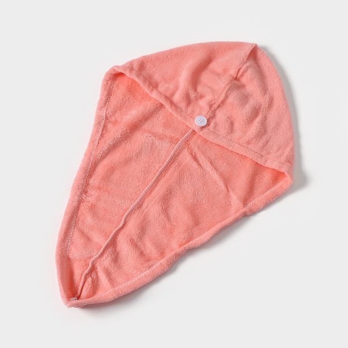Чалма для сушки волос Доляна, микрофибра, с пуговкой, цвет розовый