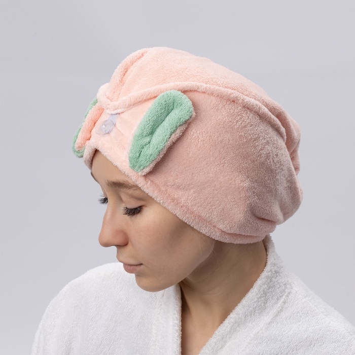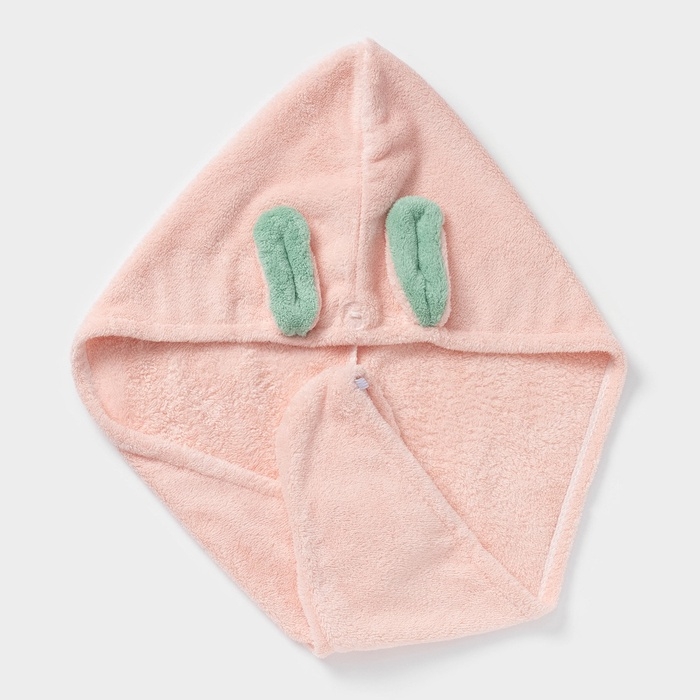 Чалма для сушки волос Доляна «Ушки», микрофибра, с пуговкой, цвет розовый