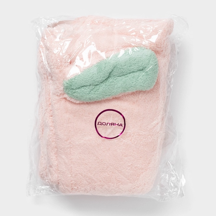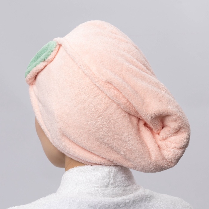 Чалма для сушки волос Доляна, микрофибра, с пуговкой, цвет розовый