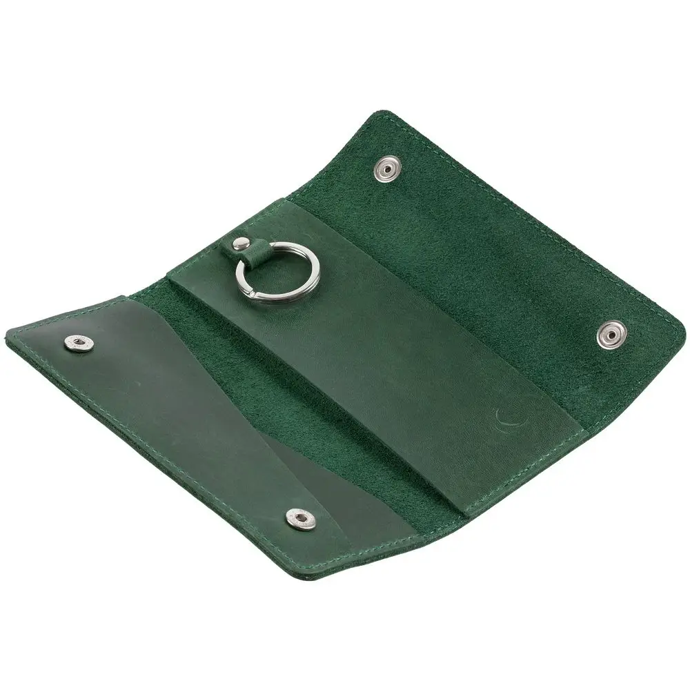 Внутри кольцо для крепления ключей длиной до 12 см. Застегивается на кнопки.