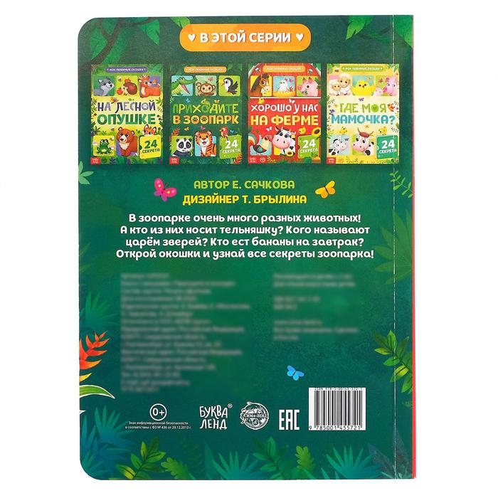 Книга картонная с окошками «Приходите в зоопарк», 10 стр., 24 окошка